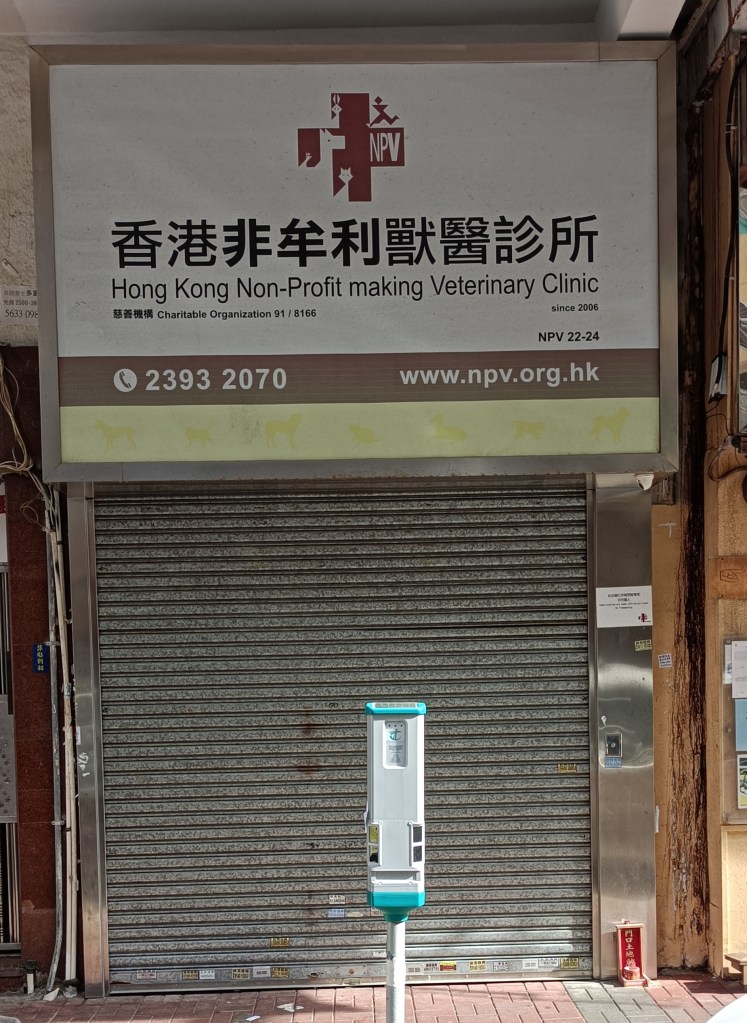 The NPV Animal Hospotal of the Hong Kong Non-Profit Making Veterinary Clinics is established in November 2021 and located in 50 Ki Lung Street, Sham Shui Po. (Photoed at January 2023)
